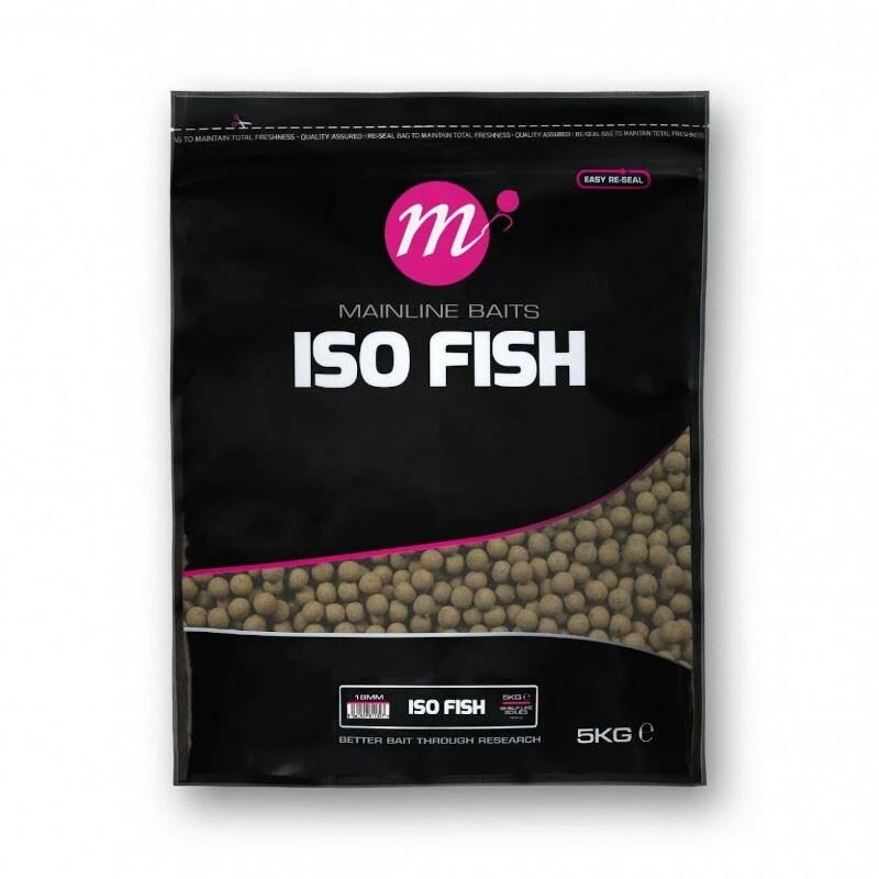 Mainline Iso Fish Shelf Life Boilies, Bereid met eersteklas basis mix ingrediënten gecombineerd met top kwaliteit versterkers. en direct gedroogd. Dit zorgt ervoor dat vitale actieve ingrediënten zo effectief mogelijk blijven. Bevat een hoogwaardig Fish Protein Isolate (FPI) met minder dan 1% vet/olie en meer dan 90% eiwit. Een uitstekende bron van zeer goed verteerbare aminozuren waardoor dit aas het hele jaar door een effectieve keuze is.