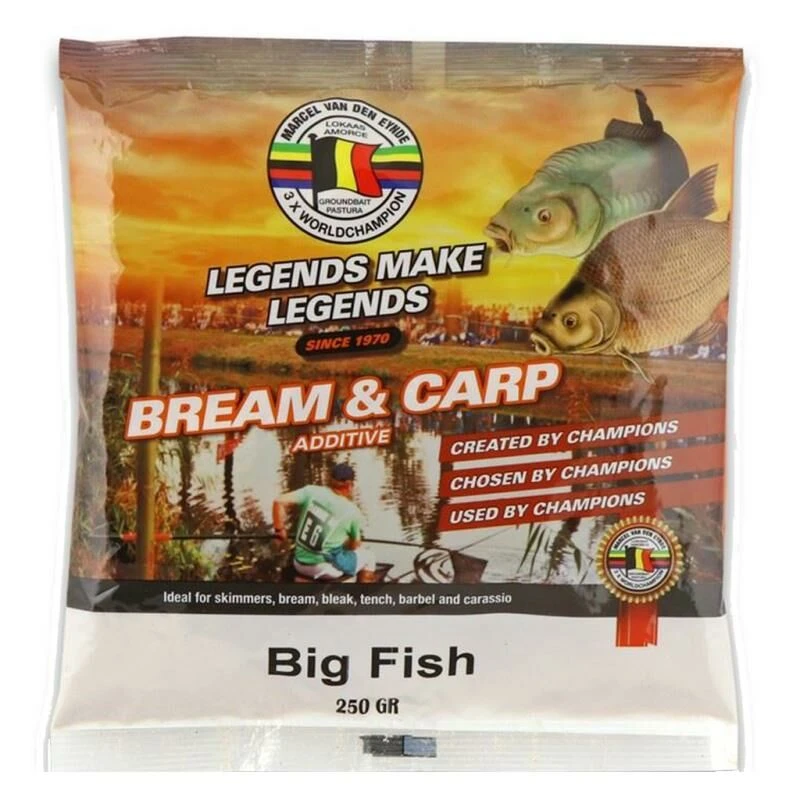 De Van den Eynde Big Fish is een additief met een sterke zoete aroma van fruit en vanille geuren die een grote aantrekkingskracht heeft op brasem en karper